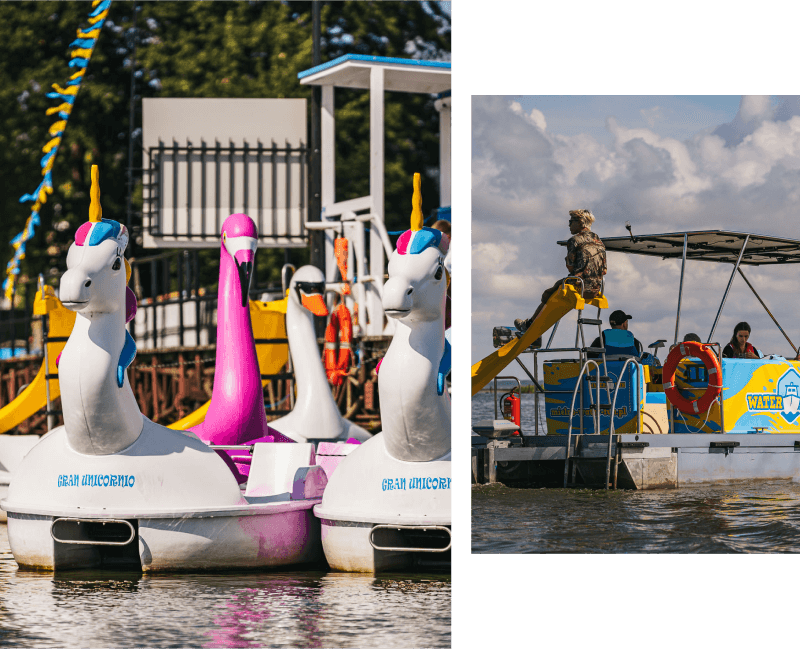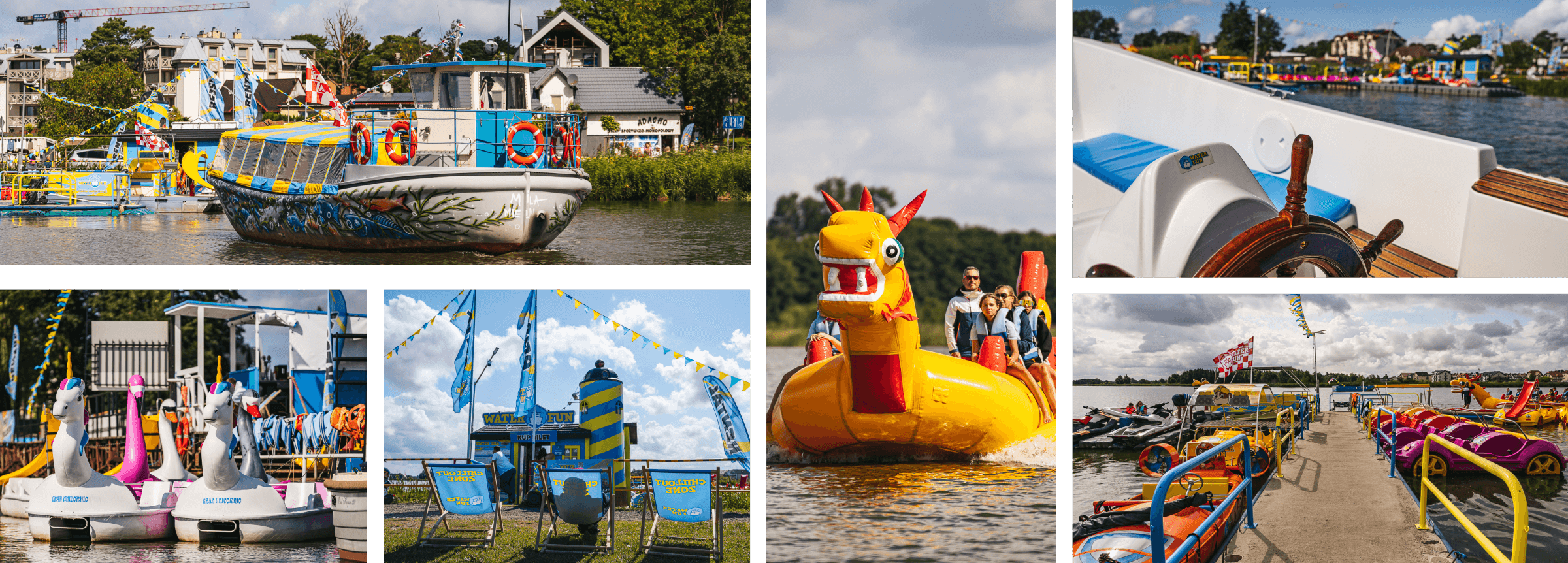 Regularnie wprowadzamy atrakcje wodne, które trudno spotkać w innych miejscach w Polsce! Przetestuj naszą ultra szybką motorówkę rozwijającą niesamowitą prędkość, rodzinną deskę SUP dla nawet 8 osób oraz unikalny pakiet skutera wodnego z pływającą wyspą dla 12 osób.
