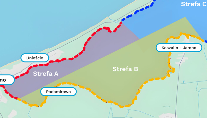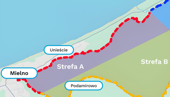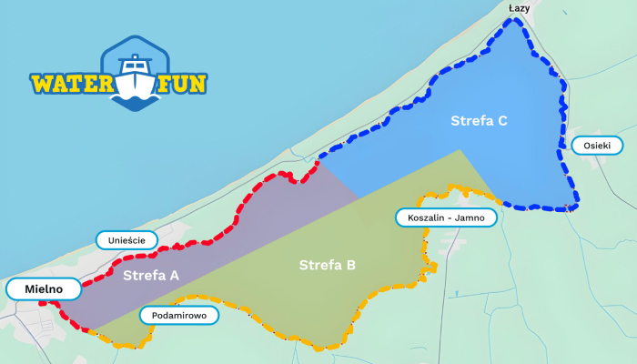 Mielno ↔ Unieście i inne miejscowości na mierzei. Szybki transfer bez korków drogowych po mielneńskiej stronie jeziora Jamno.